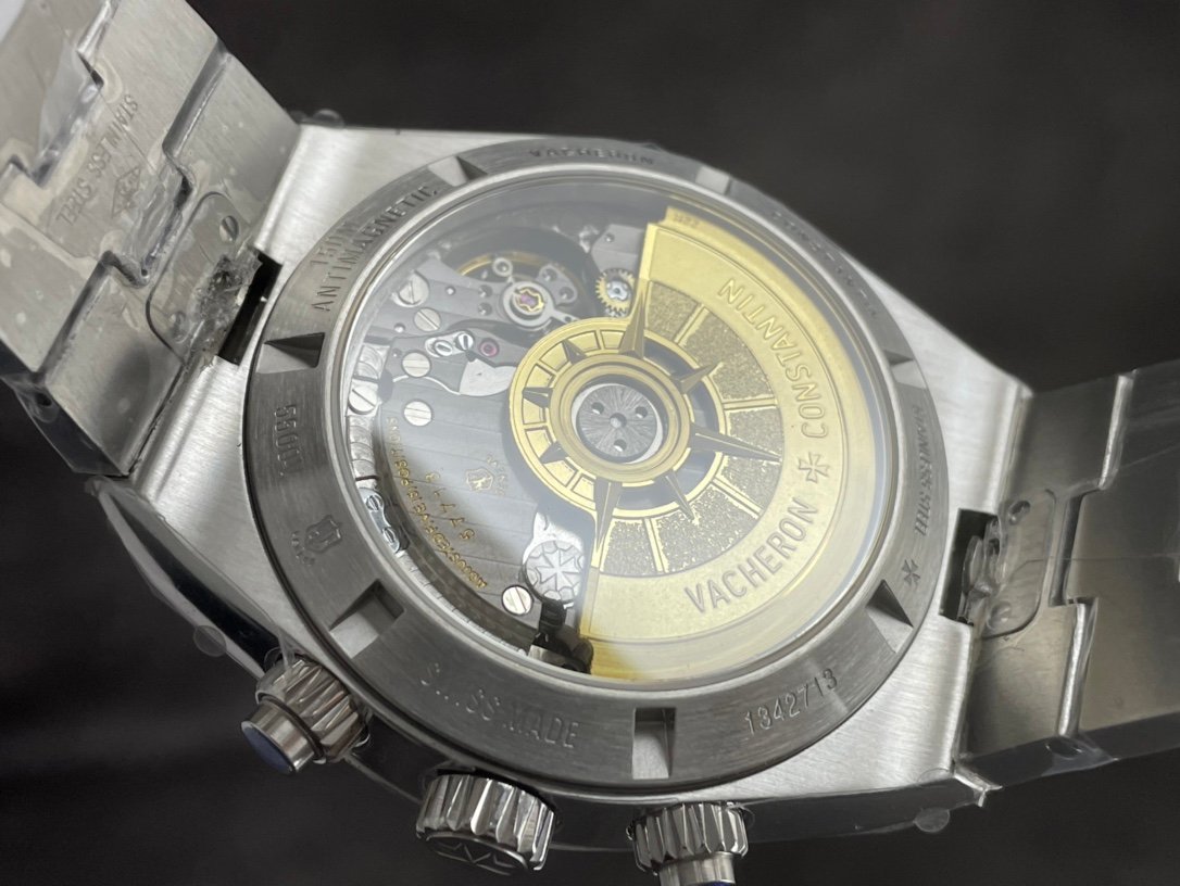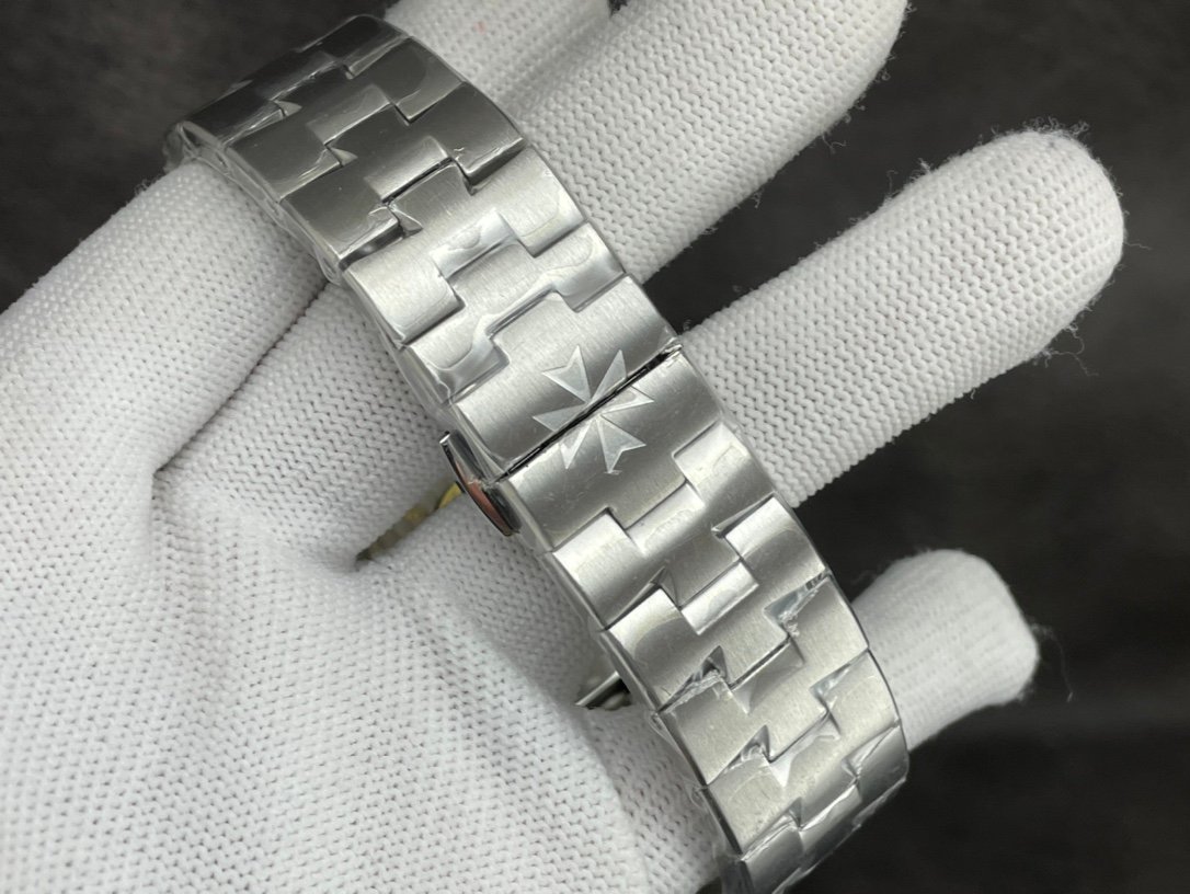 Every aspect of the 8F Vacheron Constantin Zongheng Sihai Series 5500V V2 Edition reflects the pinnacle of luxury and artistry. The case is made from high-grade steel, processed through upgraded polishing techniques to achieve a smooth and natural appearance. The combination of polished and satin-modified surfaces elevates its aesthetic appeal, creating an ornamental masterpiece. The arc-shaped bezel and case design emphasize elegance, capturing light beautifully to enhance visual engagement.