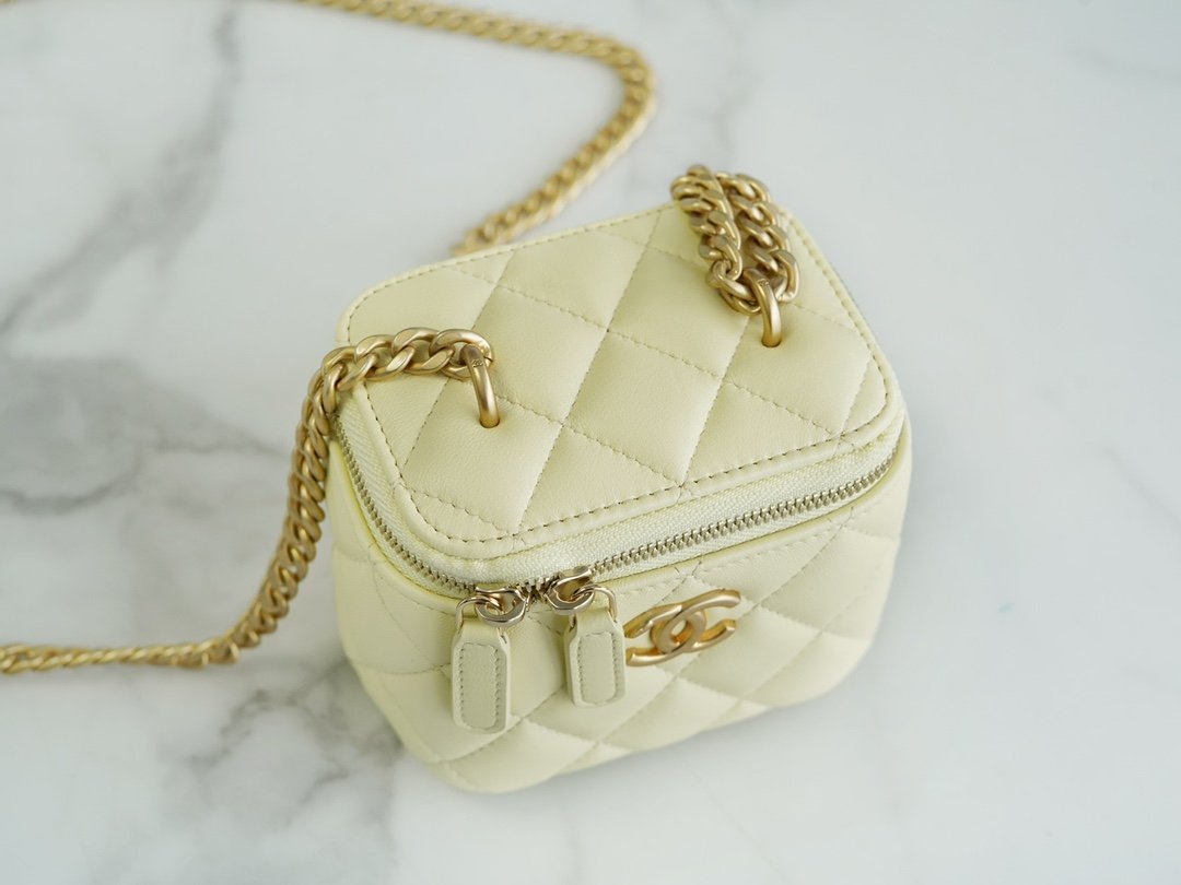 This stunning product stands out due to its meticulous craftsmanship. Made from soft and delicate sheepskin, the small box brings a touch of luxury to your daily style. The retro heroic sand gold finish adds a simple yet charming touch that is proudly handmade, making it not only tough and durable but also a genuine artistic creation. Each piece exhibits strong detailing that highlights the quality and elegance that the CHANNEL brand is known for.