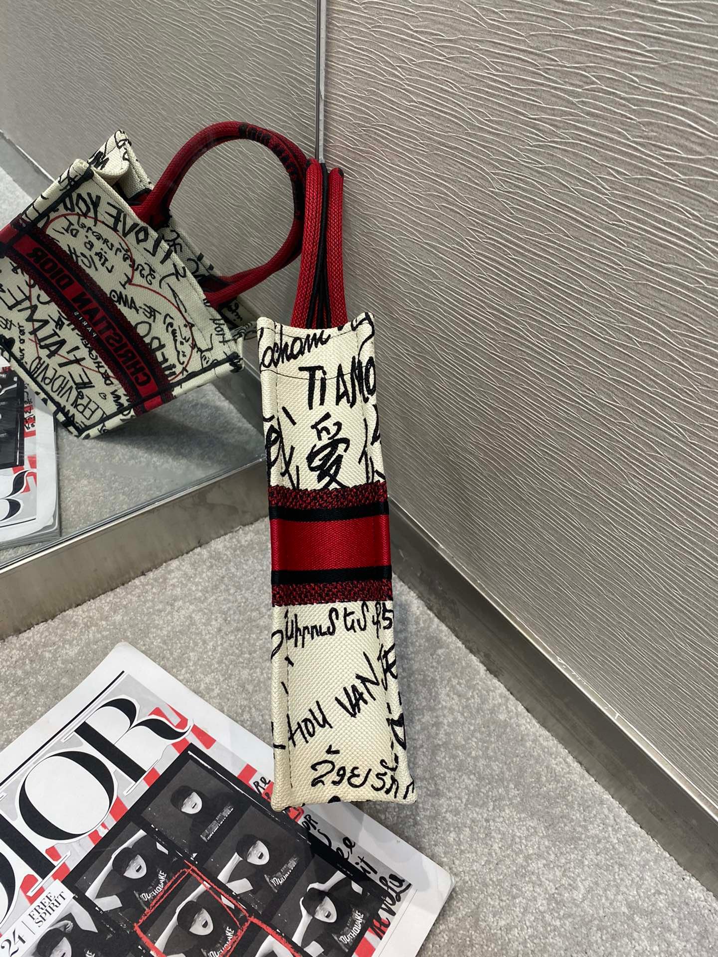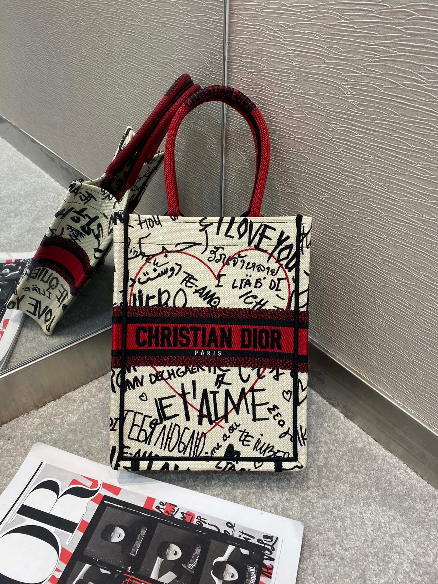 Introducing the exquisite Dior Vertical Mini Tote from the unique Chinese Valentine’s Day graffiti series! This charming tote beautifully expresses your love with intricate designs showcasing messages in 38 different languages. Perfect for anyone looking to carry a piece of romantic art wherever they go, this bag is more than just an accessory—it’s a declaration of love.