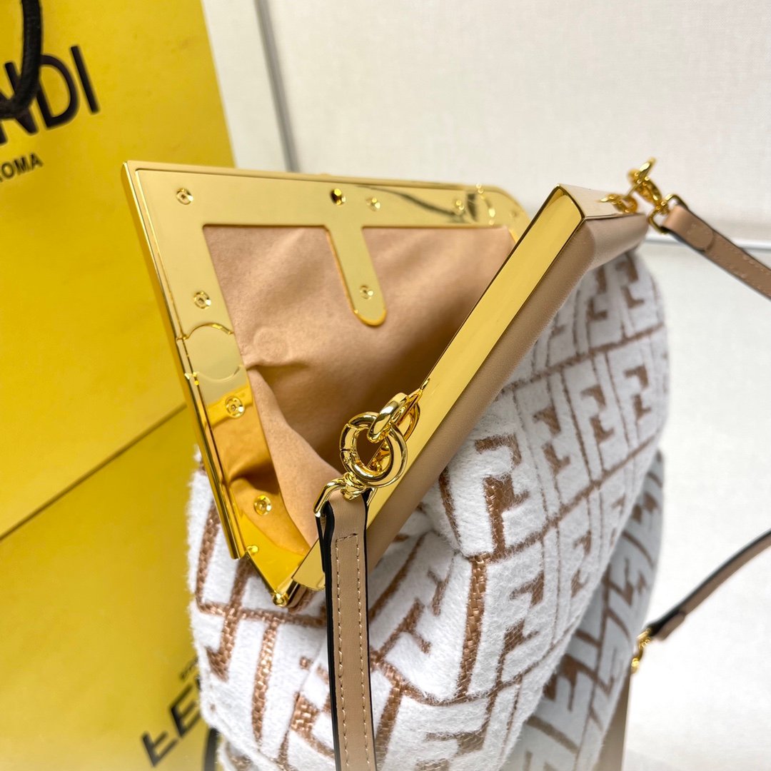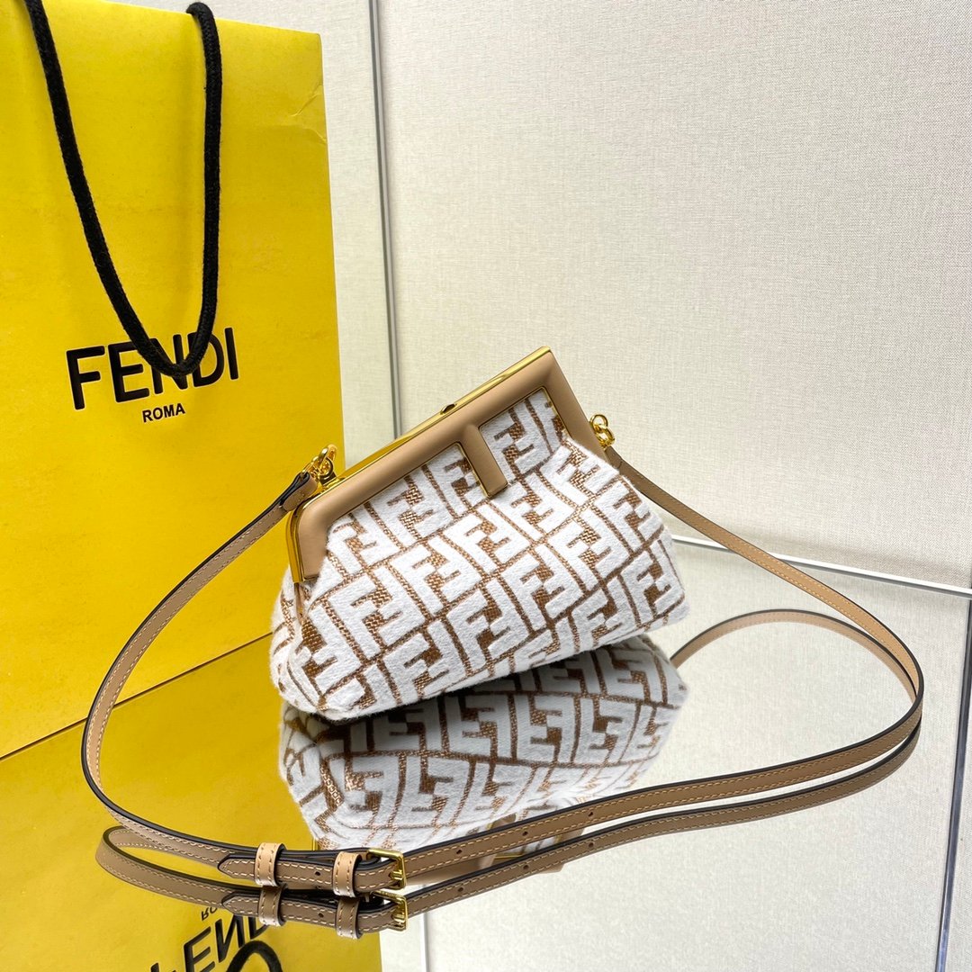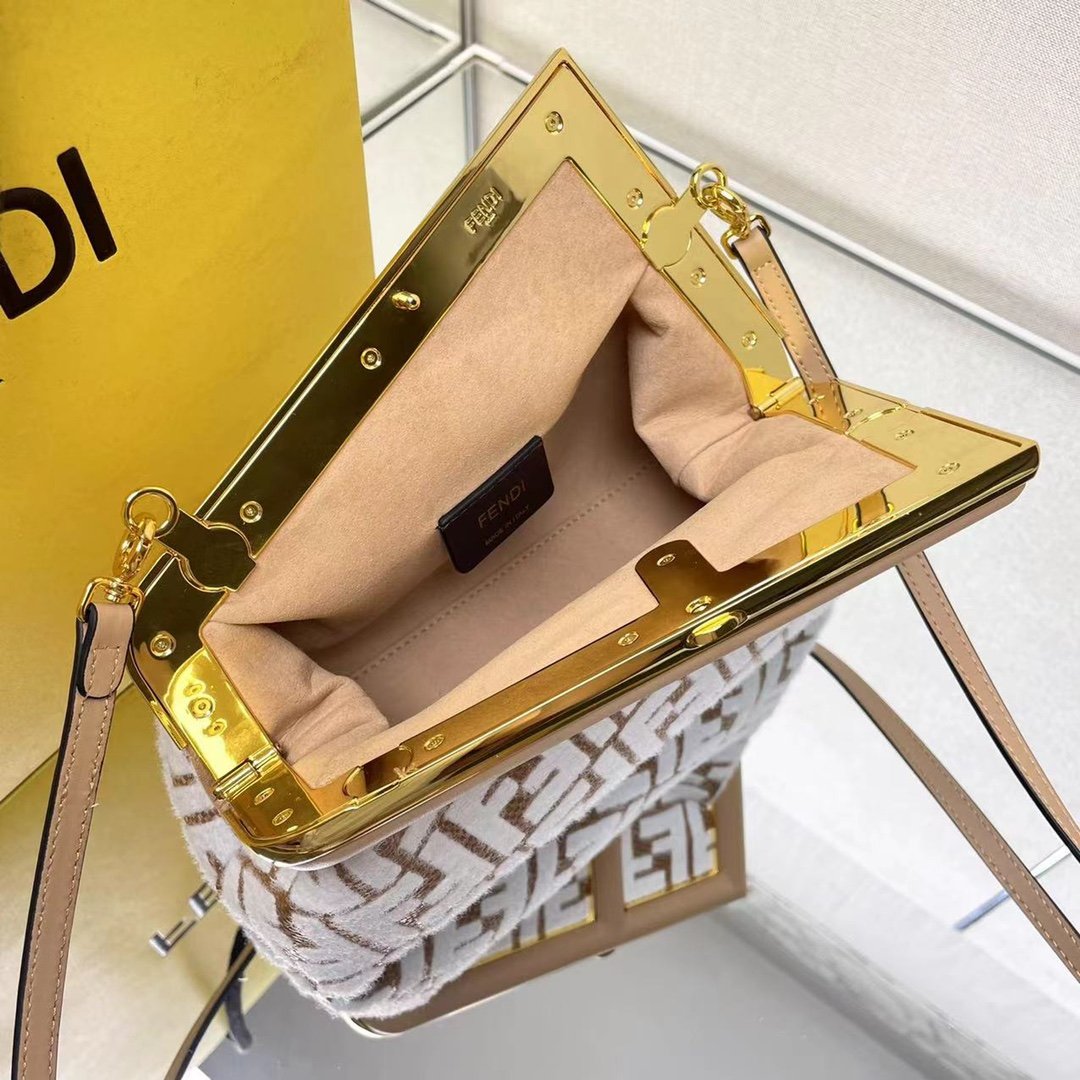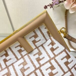 The Fendi First embraces an innovative shape that diverges from traditional bag designs, making it a striking statement piece for any fashion-forward individual. The eye-catching large metal edge logo buckle is a testament to architectural art fused seamlessly with modern fashion. This design philosophy ensures that the Fendi First stands out in any setting, effortlessly attracting attention and admiration. Whether it’s a formal dinner or a casual outing, this bag elevates your presence with an air of high-end street chic.