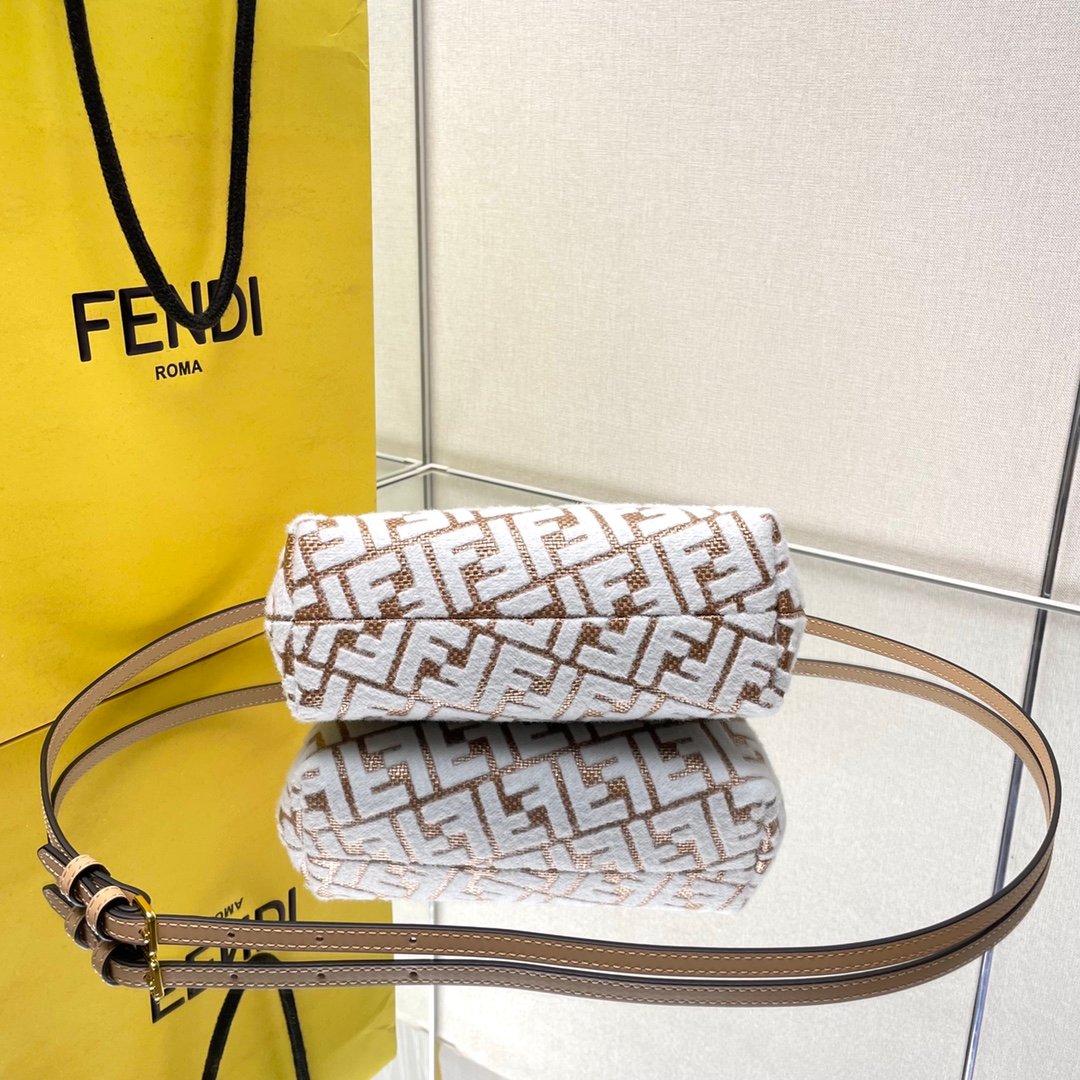 Presenting the Fendi First, an unmatched symbol of style and creativity designed under the visionary leadership of Kim Jones. This original color Rafite woven masterpiece redefines luxury handbags with a fresh and bold approach. The Fendi First not only captures the essence of contemporary fashion but also showcases a stunning brocade effect with Chenille FF pattern embroidery that adds depth and sophistication to this extraordinary piece.