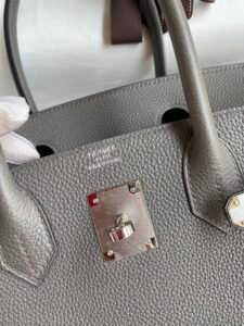 Step into the world of luxury with the exquisite Hermes full hand sewing Birkin 30cm. Crafted from imported royal calfskin in a stunning tin tamp grey shade, this handbag is a true testament to the superior craftsmanship that Hermes is renowned for. The Birkin’s sleek design, coupled with its elegant aesthetics, makes it a must-have for any fashion aficionado.