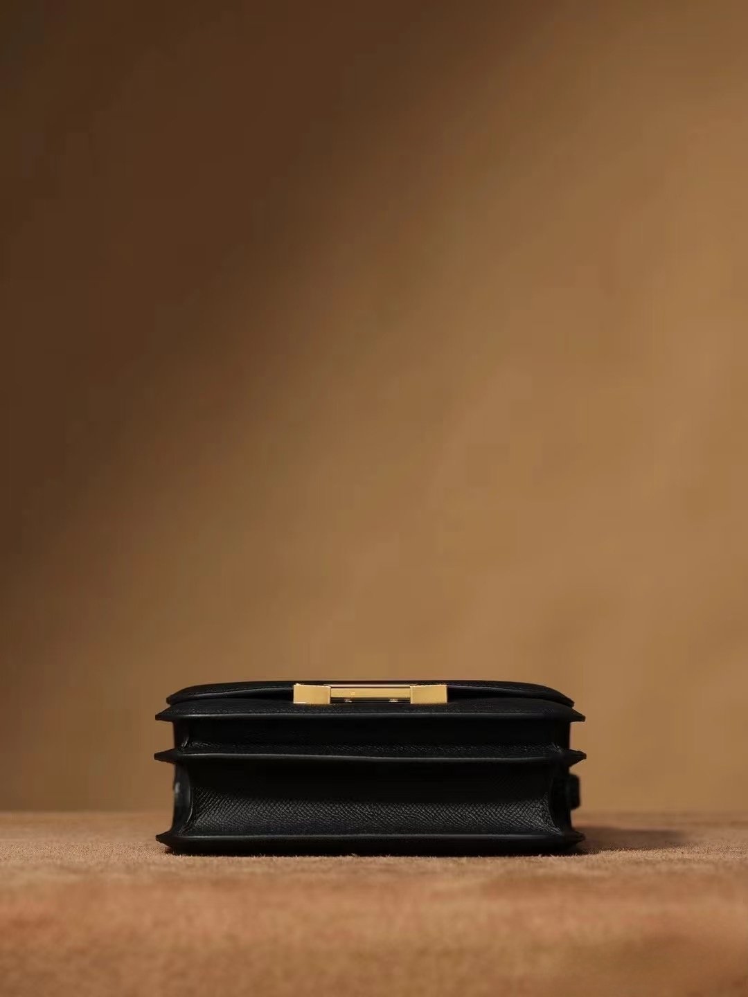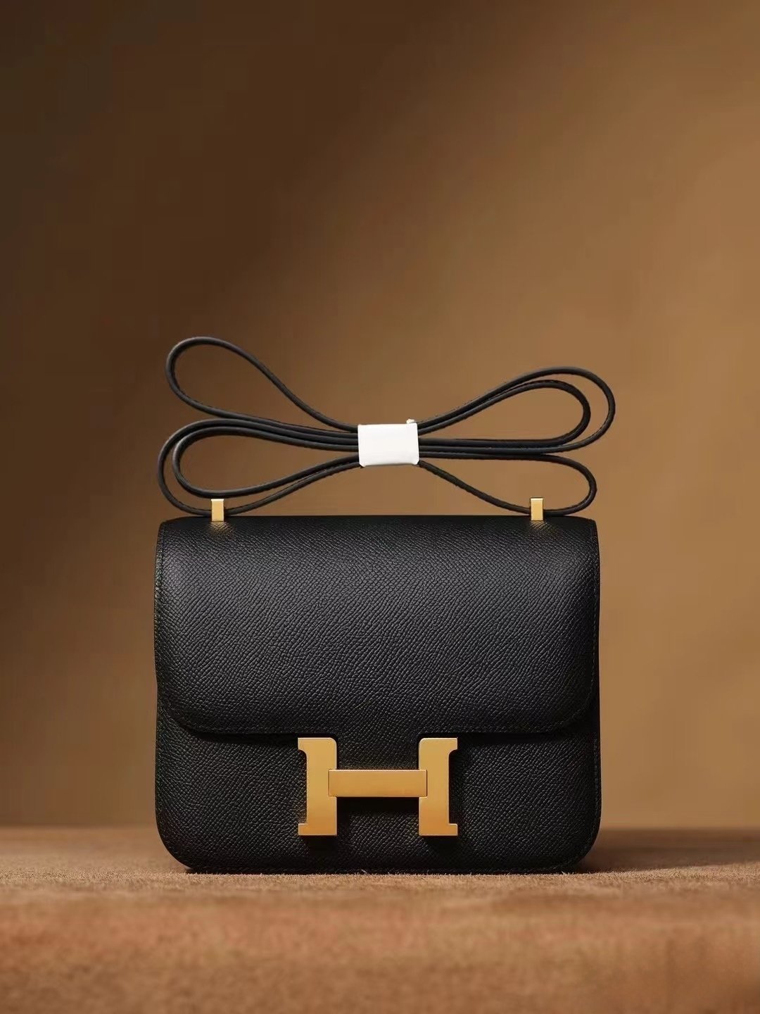 作为爱马仕最标志性的设计之一,Constance 19 结合了流线型的设计和实用的功能性。这款黑色版本采用标志性的埃普索姆皮革和闪亮的金色 “H” 扣,体现了低调的优雅。