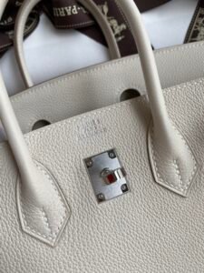 This Birkin is tailored for those who appreciate the finer things in life. Measuring 25cm, its compact design provides ample space for essentials while retaining a chic silhouette. The striking silver buckle not only enhances the aesthetic appeal but also serves as a secure closure, ensuring your belongings are safe and sound. Whether you’re heading to a business meeting or a casual outing, this handbag effortlessly elevates your ensemble.
