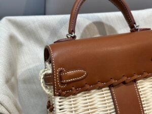 This full handmade masterpiece features luxurious saddle leather combined with the unique Osier wicker, providing a perfect balance of elegance and durability. The silver buckle adds a touch of modern sophistication, making the Mini Kelly Picnic Bag not just a functional handbag but a piece of art in its own right. Each bag is crafted with meticulous attention to detail, ensuring that you receive a product that exemplifies HERMES’ legacy of quality.