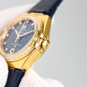 Designed for versatility, the Omega Constellation 29mm watch comes equipped with an innovative adjustable buckle. This unique feature allows the bracelet to be extended by an additional 2mm, offering a customizable fit for maximum comfort throughout the day. Coupled with its striking ‘Shuangbu’ sapphire mirror, which offers durability and clear visibility, this watch is perfect for style-conscious individuals who appreciate functionality.
